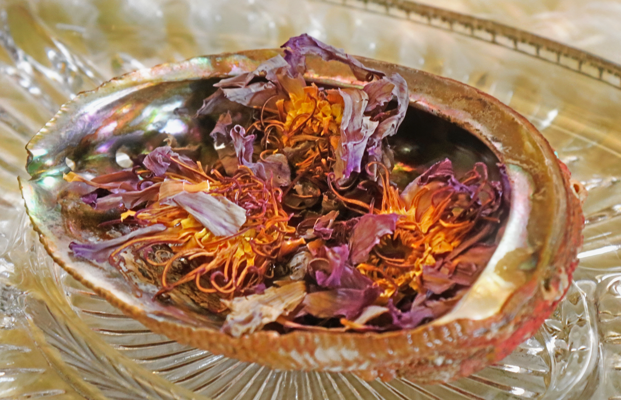 Sacred to the ancient Egyptians, the blue lotus flower can be found in the Nile River and other parts of Africa. The petals of the flower have been used to make tea, infuse in wine, and for smoking. The flower's properties are said to improve mental clarity, creativity, and induce astral dreaming. Blue Lotus is also said to be a relaxant and help with anxiety and stress.